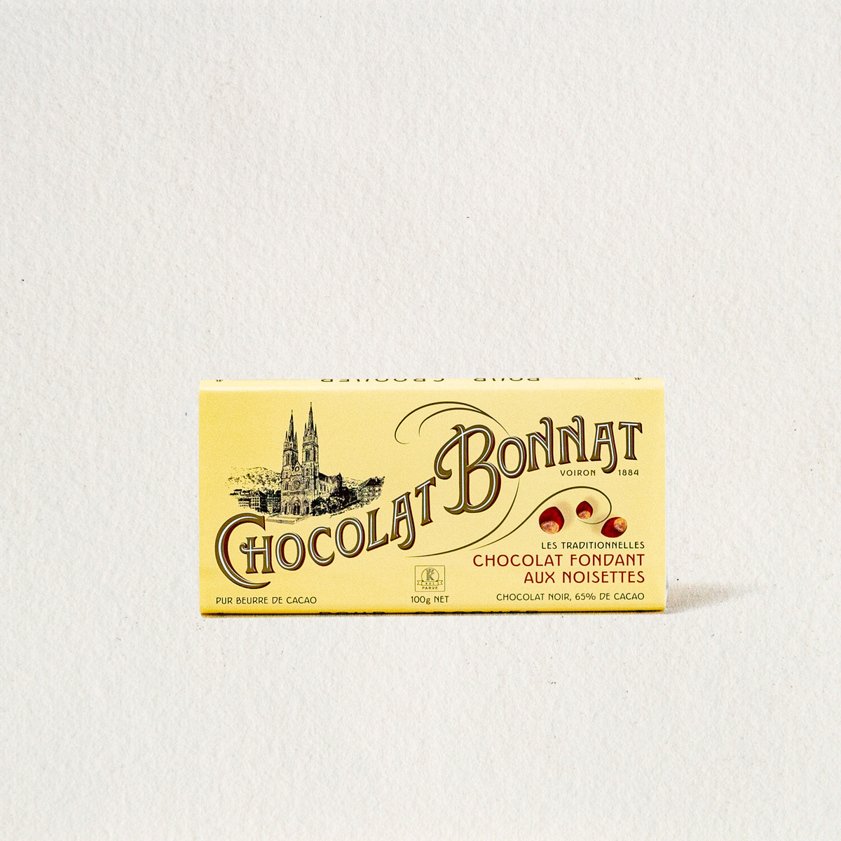 Composition : Cacao, beurre de cacao, sucre, éclats de noisettes caramélisées 10%.