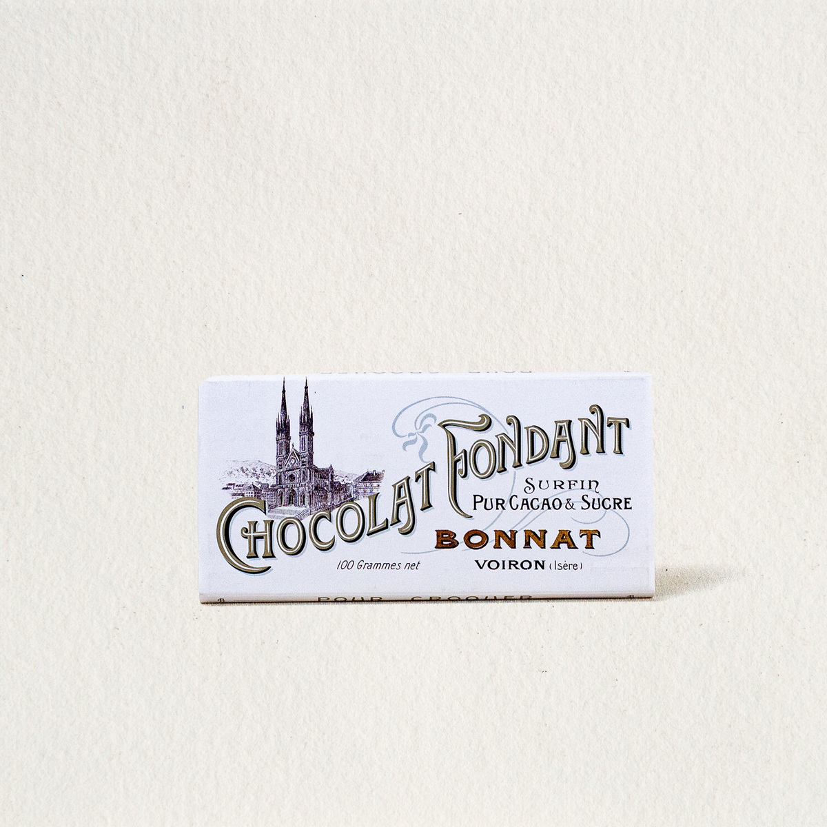 Cette tablette de chocolat noir à 65 % de cacao est élaborée en suivant la recette originelle inventée par Félix BONNAT en 1884. Vénézuela, Afrique de l’ouest, Brésil, Pérou et Mexique sont les pays d’où proviennent les cacaos qui composent ce délicat assemblage formant la signature de ce chocolat fêtant ses 130 ans.